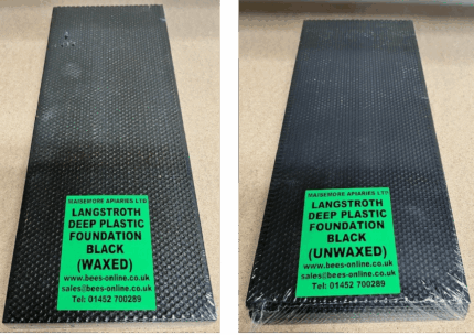 Langstroth Deep Plastic Foundation - Per 10 SHEETS BLACK ONLY!Ā  Ā  Ā  SIZE = 425mm x 212mm Once the combs have been drawn they are virtually unbreakable allowing you to extract faster and if you have hard honey y6ou are able to scrape the frame back to the plastic comb. The foundation does not sit in the grooves of the side bars but simply in between the side bars.