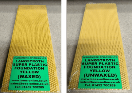 BS Shallow Plastic Foundation Per 10 SHEETS, choose Yellow OR Black SUITABLE FOR NATIONAL, WBC & SMITH HIVES, SIZE = 333mm x 125mm Once the combs have been drawn they are virtually unbreakable allowing you to extract faster and if you have hard honey y6ou are able to scrape the frame back to the plastic comb. The foundation does not sit in the grooves of the side bars but simply in between the side bars.