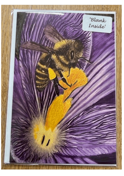 7″ x 5″ HONEYBEE ON PURPLE FLOWER GREETINGS CARD