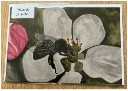 7″ x 5″ HONEYBEE ON WHITE FLOWER GREETINGS CARD