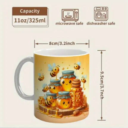 11oz Ceramic Bee Mug with Cute Bees & Honeycomb Design