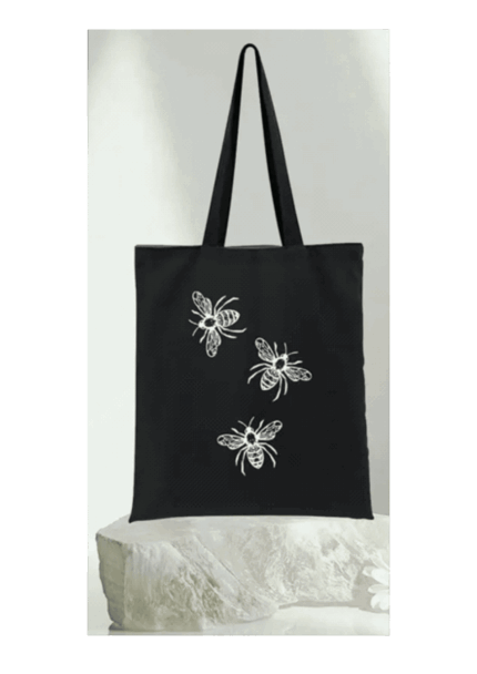 Black & Yellow Bees on Flower Tote Bag BLACK