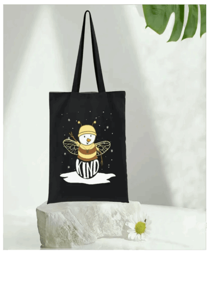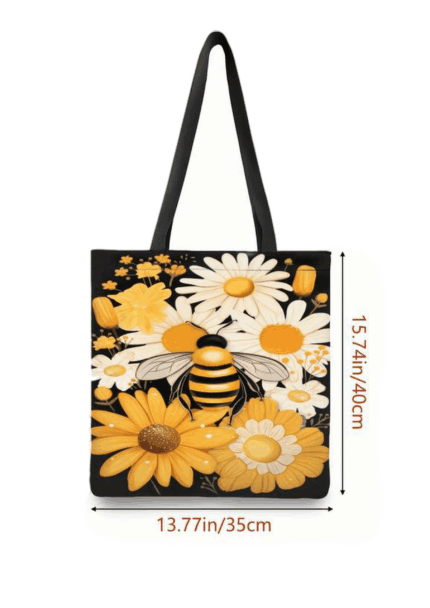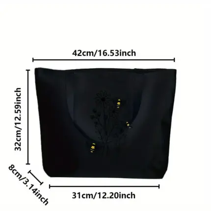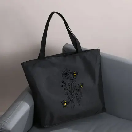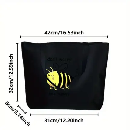 Don’t Worry Bee Happy Black Tote Bag with Zipper Closure