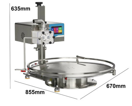 Its rotating table has a 650mm diameter and a load capacity of 50kg. With adjustable speed from 0–3 r/min, it supports different bottle sizes and weights.