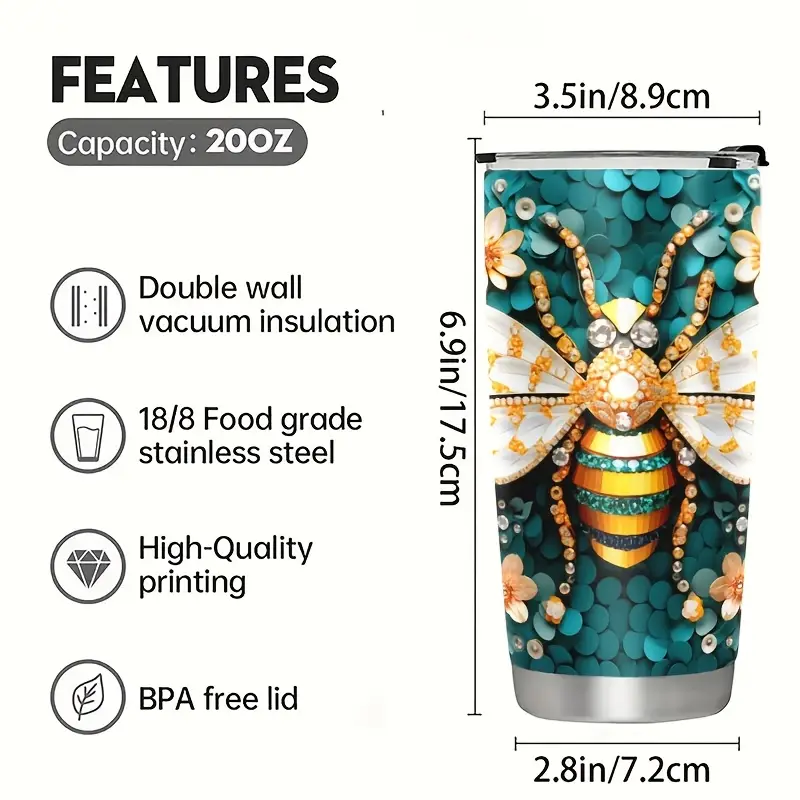 20oz Stainless Steel Insulated Tumbler with Lid – Bee Design 22