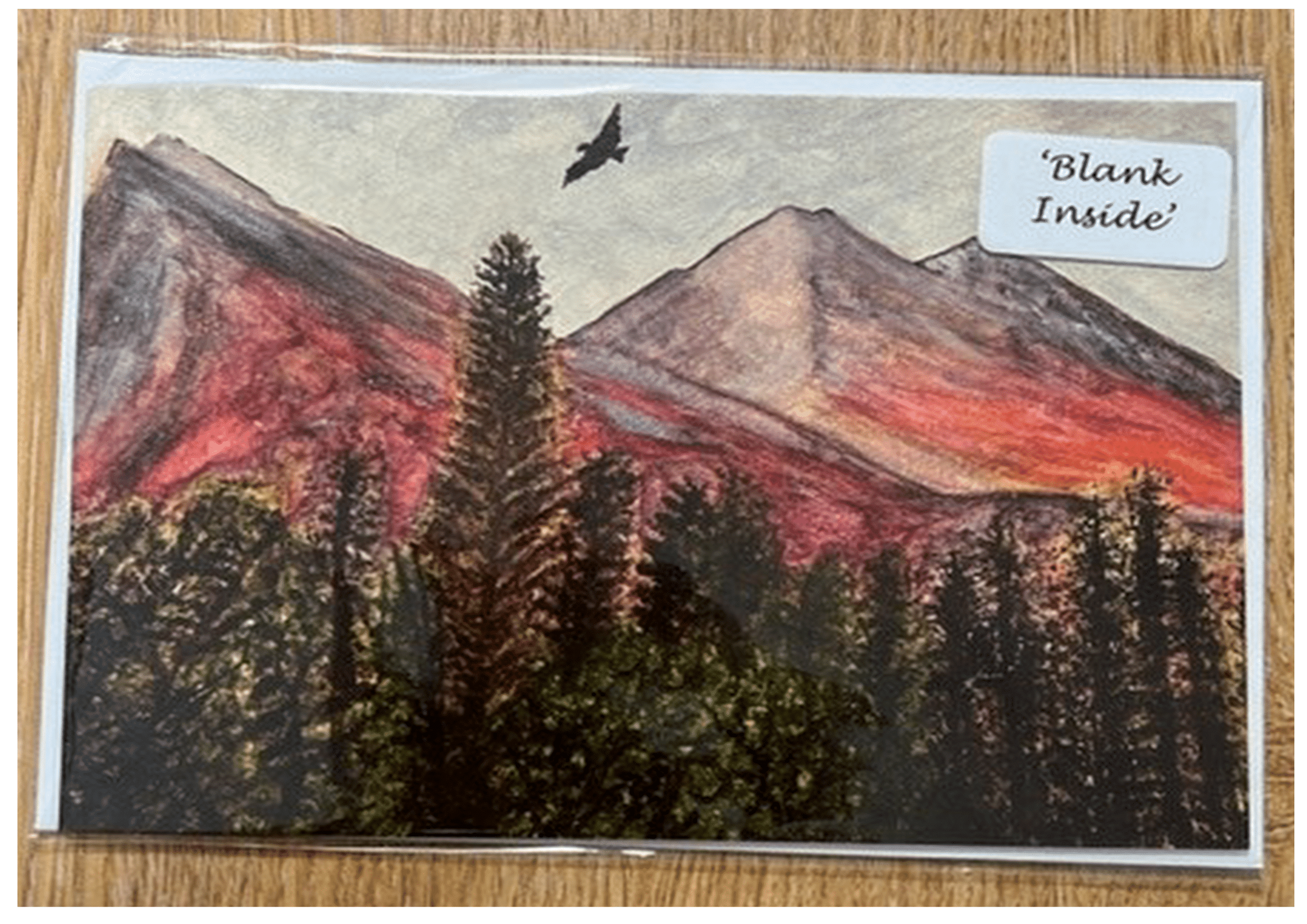 Painted by a local painter, Blank inside for you to write your own message, whatever the occasion. Comes with envelope.