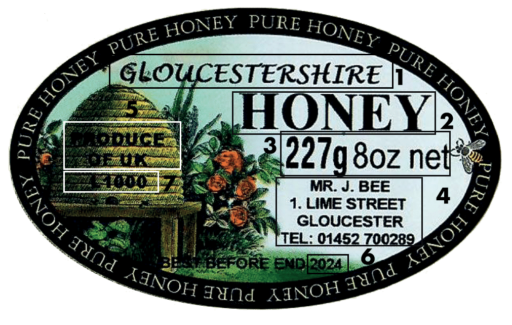• Area 6 – Best Before End Date – This would normally be the end of a year and is required on all labels.