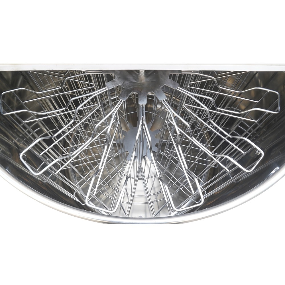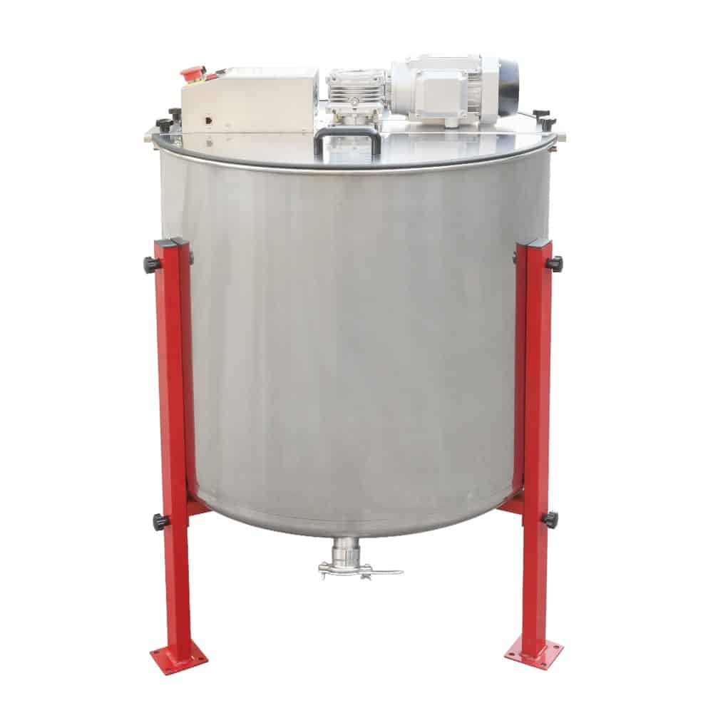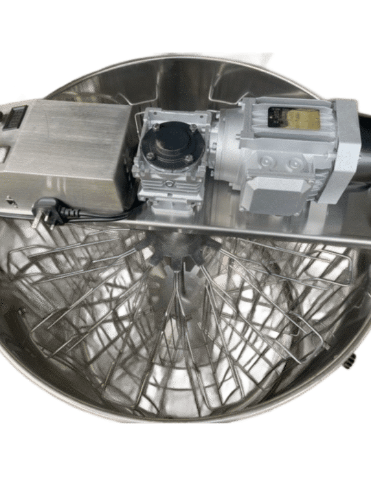 Budget 12 Frame Stainless Steel Radial Extractor (Electric), reversible motor, comes with legs and a stainless steel honey gate. There is 26cm from floor to bottom of honey tap, Will take BS Deep and BS Shallow Frames and BS Manley Shallow Frames. WILL NOT TAKE 14×12 FRAMES