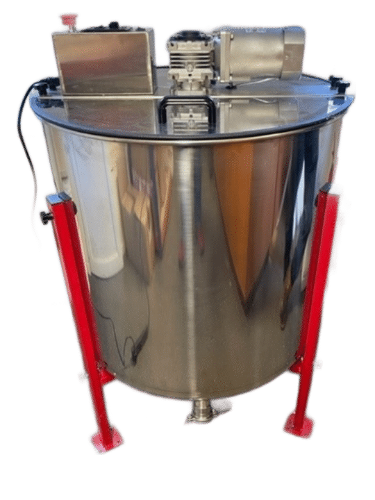 Budget 6 Frame Stainless Steel Radial Extractor (Electric), reversible motor, comes with legs and a stainless steel honey gate. There is 26cm from floor to bottom of honey tap.