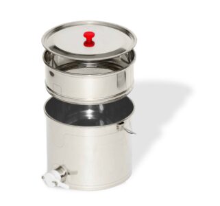 - includes a double strainer to remove larger particles and impurities before the honey is poured into the tank. The strainer is made of stainless steel or nylon, that catches any debris that may have been missed during the earlier processing steps.