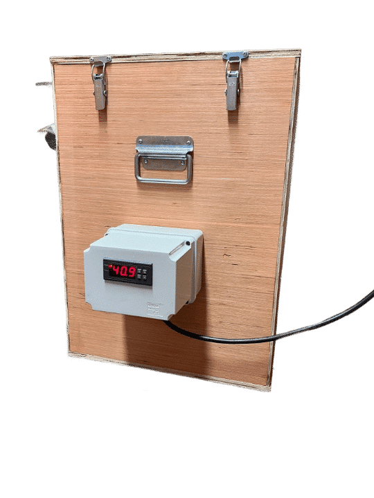 An accurate way of controlling the temperature of your honey when bringing it back to liquid for bottling, includes a temperature indicator strip which glows when the cabinet reaches the correct temperature.