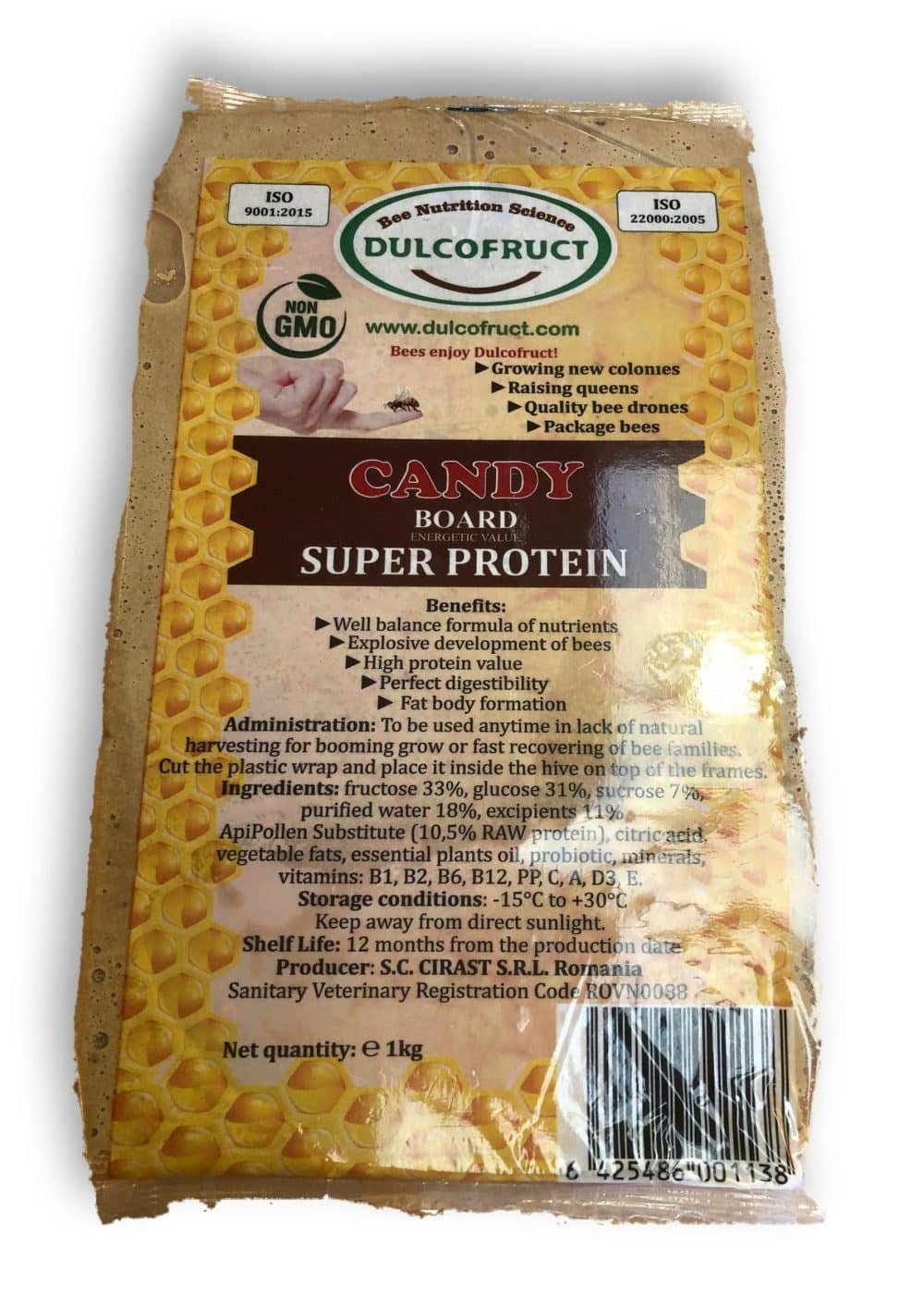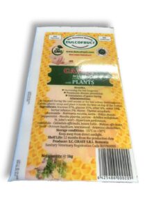 This product contains 20% ApiPollen Substitute, with a perfect carbohydrates balance (fructose, glucose, sucrose), also with a high protein content (raw protein 10%) that assures the explosive development of the bee family. It represents the complete solution between nectar and pollen. Contains probiotic that helps for the perfect assimilation of protein and the hole ensemble of microelements that are needed for the fast development of the bee family’s power. Administration mode: To be used as food in the spring, after the cleansing flight, and in the autumn for forming the fat body and to prepare the bee colonies for the winter period.