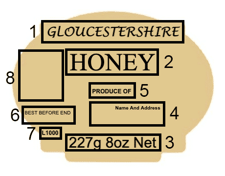 • Area 7 – Lot number – State whether they are the same number on every label or consecutive (ie., L001, L002, L003 etc.,.) Only numbers can be consecutive not letters. A Lot No is required if honey is being sold via a third party.