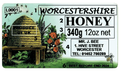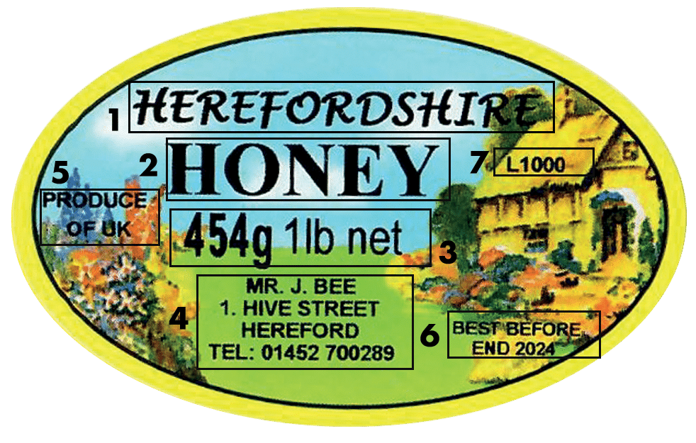 • Area 7 – Lot number – State whether they are the same number on every label or consecutive (ie., L001, L002, L003 etc.,.) Only numbers can be consecutive not letters. A Lot No is required if honey is being sold via a third party.