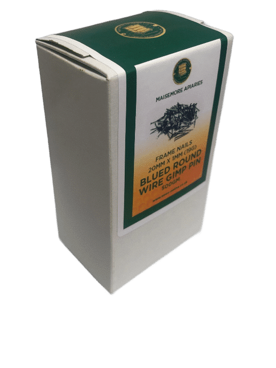 3/4″ length, black japanned gimp pins for assembling frames and other jobs in the apiary. 500g will do approx. 350 frames.