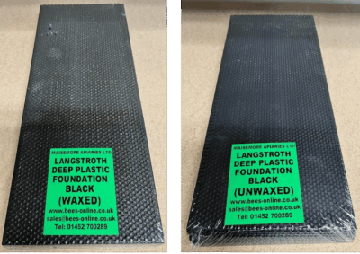 For faster results it is advised to paint both sides of the plastic foundation with liquid beeswax, it can be applied with a brush or a roller, also just by rubbing a block of wax over the comb will help, unwaxed frames will still be drawn by the bees but may take a little longer!