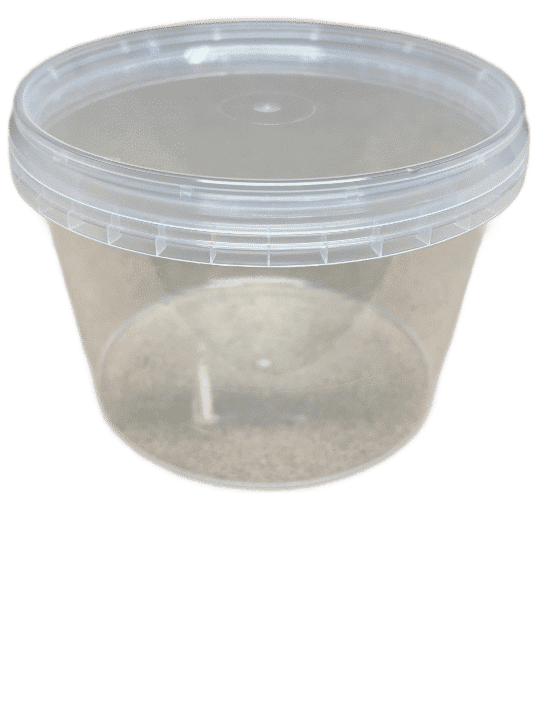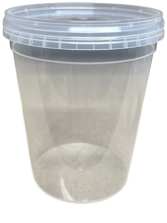 A clear transparent plastic container with lid (no handle). Comes in 2 sizes – 2lbs OR 4lbs of honey. (DOES NOT COME WITH HONEY)