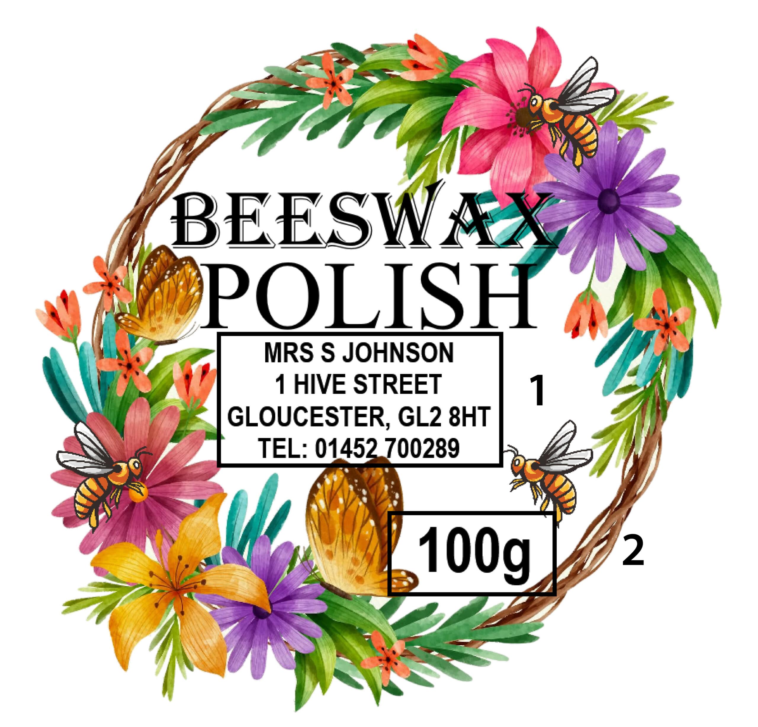 Polish Label with Bees and Flowers CIRCLE – 50mm OR 70mm