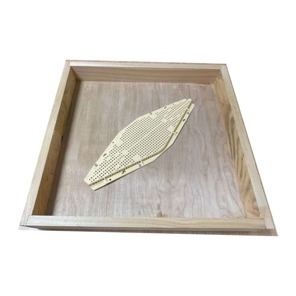 Available for NATIONAL, COMMERCIAL or WBC hives, this is our preferred method of clearing our bees, a simple 6mm plywood board in a wooden frame with a large hole drilled centrally and fixed with a rhombus escape, there are no moving parts so there is nothing to be clogged by the bees.