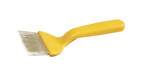 A popular & easy uncapping method. Use cold with a zig-zag action cutting just under the cappings. Rinse occasionally in hot water & wipe dry. Cranked needles assist in lifting cappings clear of comb.